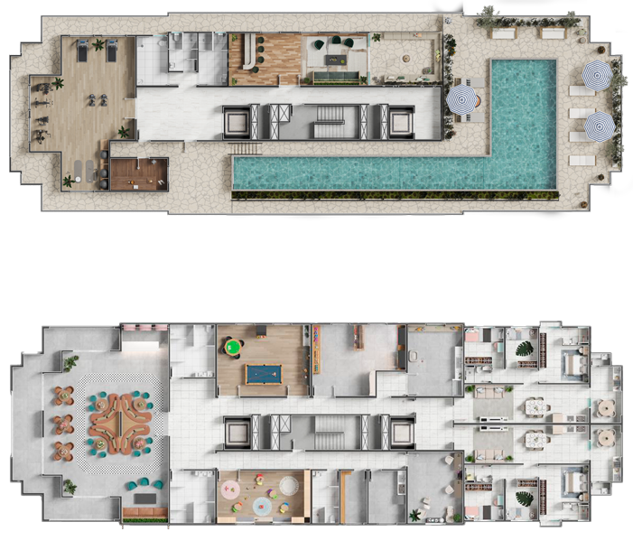 Plantas modernas que garantem conforto em espaços aconchegantes, tudo com a privacidade de 4 unidades por hall.